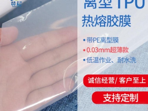 热熔胶膜,也称热熔烫胶,热熔双面胶,热熔背胶,是一种类似于双面胶,具有将两材料永久粘接住的胶粘材料,热熔胶膜是将热熔胶颗粒熔融,经高精密涂布头涂成薄膜状的热熔胶。